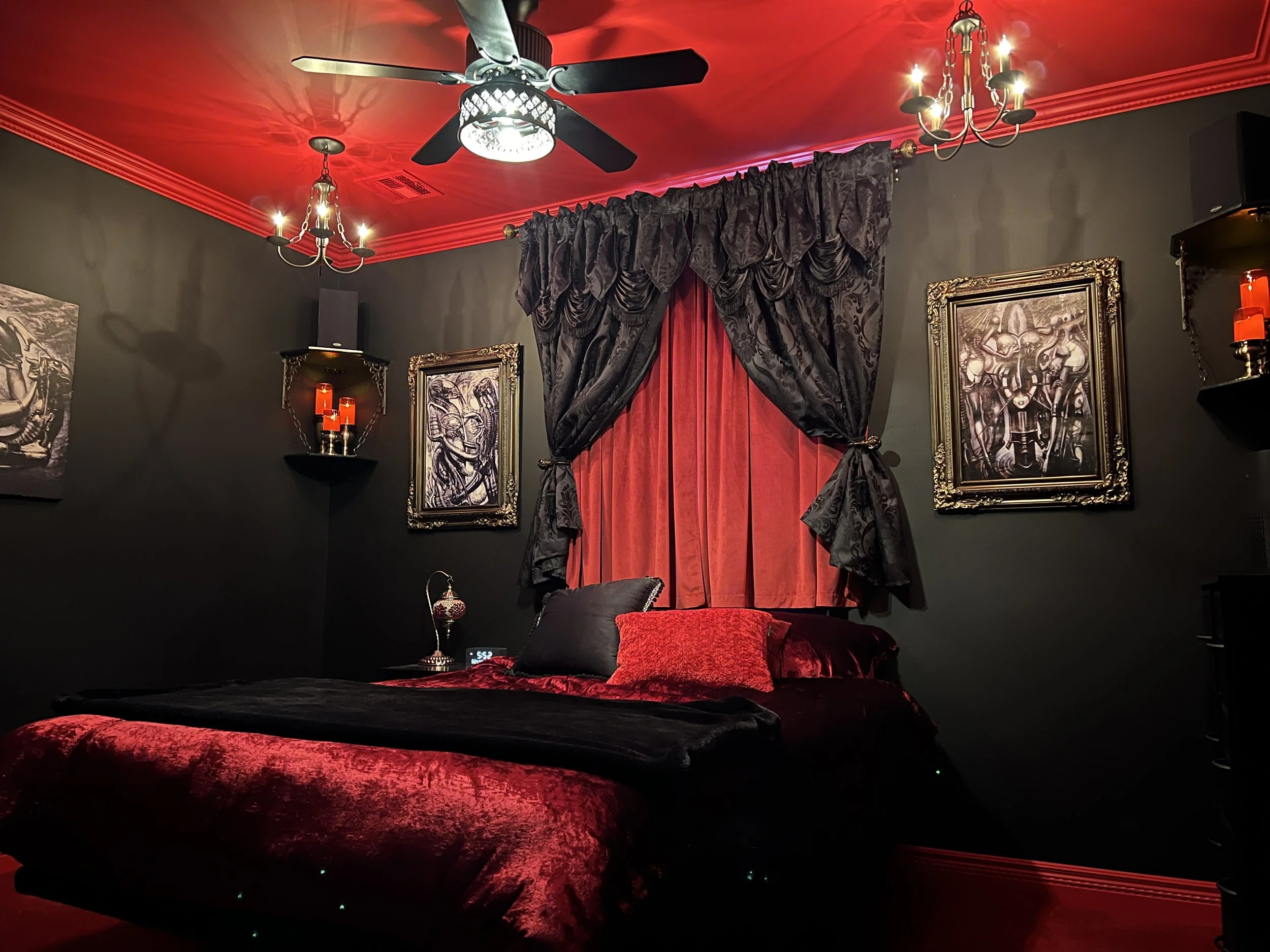 This is my bedroom in the new house that I put a lot of work into. Now I didn’t custom make everything in here like the picture frames, curtains, and bed, but I did make the speaker / candle shelves in the corner. I wanted to share this because I think it showcases what I can do to create a special mood for a room. Oddly enough my electrical background comes into play here being able to hide/run wires and install lighting to really change things up. I still have a bunch of projects I want to build in here and will add them to this page later on.
